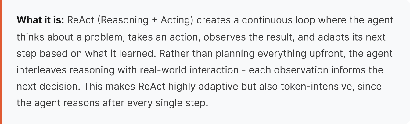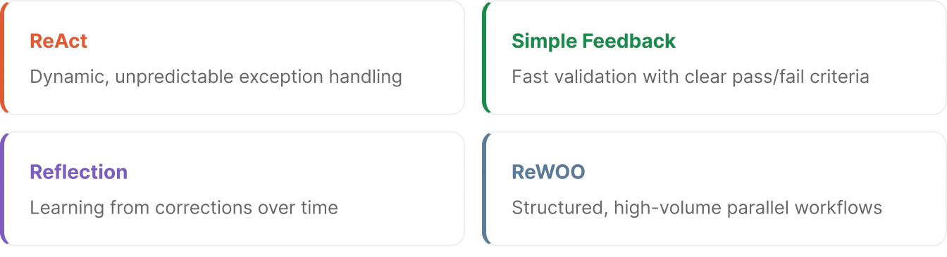 What follows is the reasoning architecture behind our production agents. Four strategies, each designed for a specific class of enterprise problem. The differences aren't academic - they determine whether your agent handles exceptions gracefully or falls apart the moment real data deviates from the demo script.